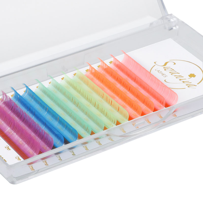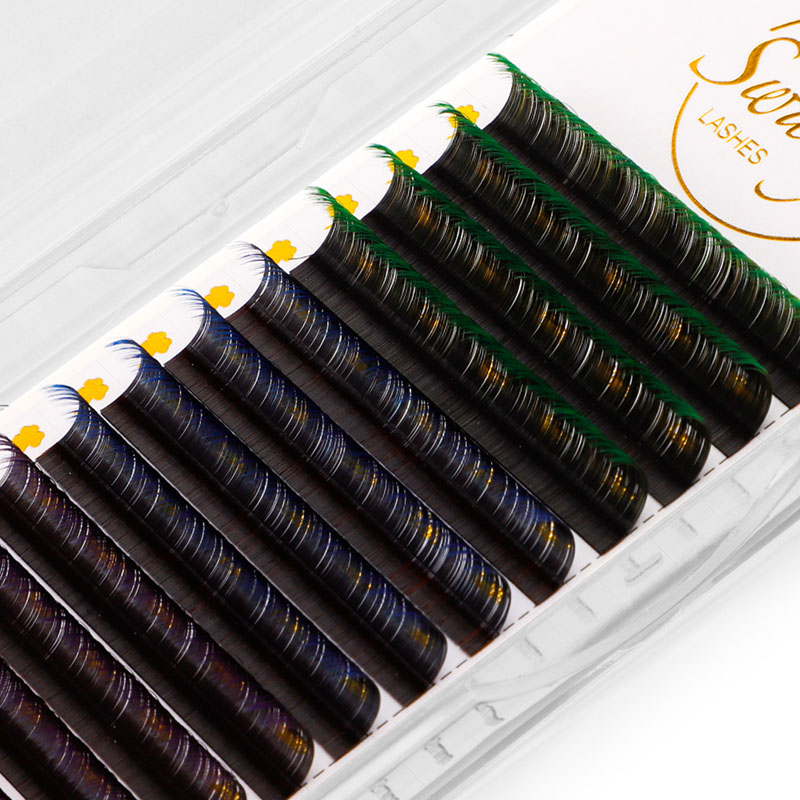 Οι πολύχρωμες επεκτάσεις των βλεφαρίδων Swaniya έχουν χρώμα ombre (ombre μπλε, ombre μοβ, λευκό ροζ ombre κ.λπ.), κανονικό χρώμα (κόκκινο, ροζ, κίτρινο, λευκό, πράσινο, μπλε, μοβ κ.λπ.), χρώμα νέον.
